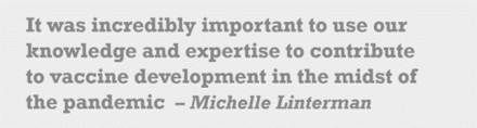 “Because we’re funded by the BBSRC – in other words the tax payer – it was incredibly important to use our knowledge and expertise to contribute to vaccine development in the midst of the pandemic,” she says.